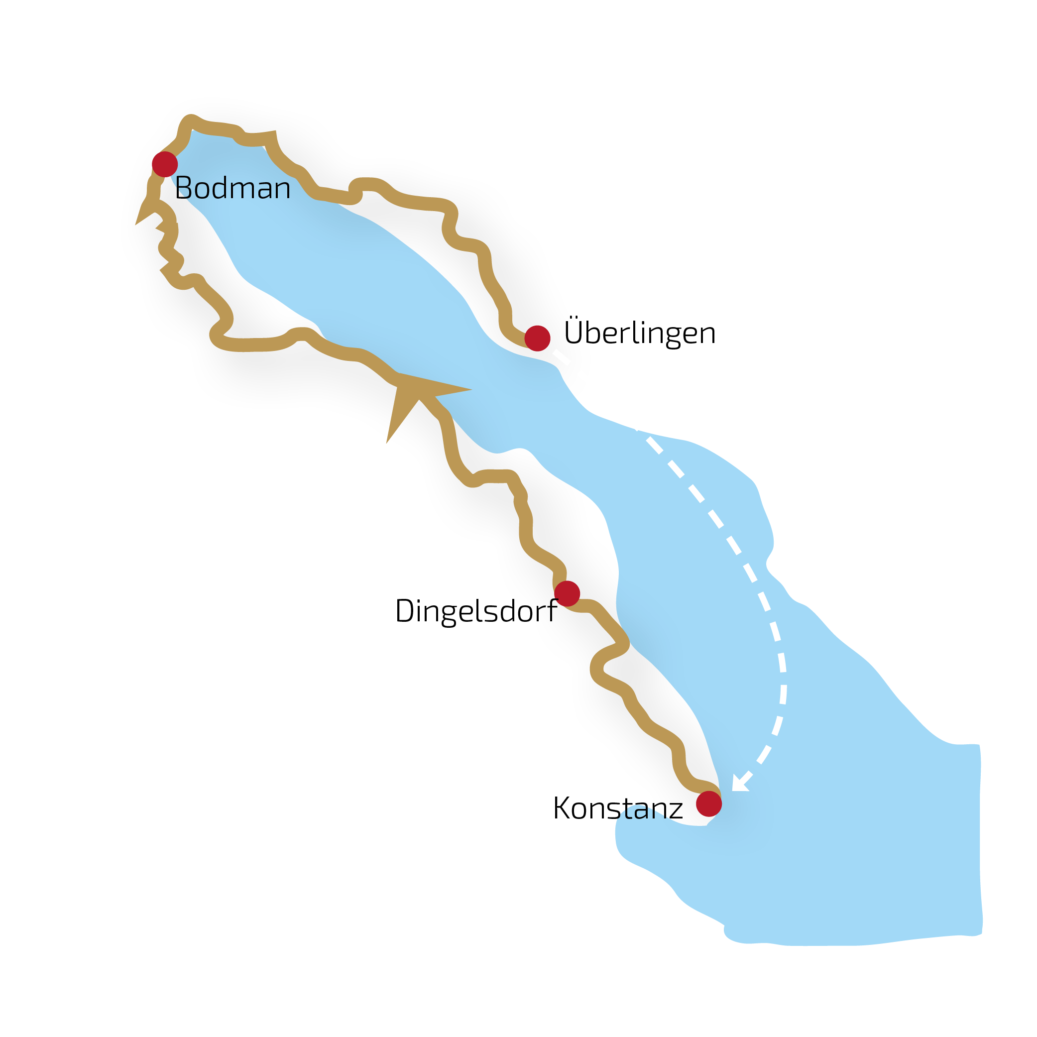 Die Reise beginnt und endet in Konstanz. Konstanz selbst ist gut im Fernverkehr der Deutschen Bahn zu erreichen. Wir empfehlen Dir daher die Anreise mit öffentlichen Verkehrsmitteln nach Konstanz.