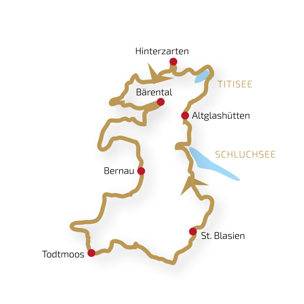 Entdecke in sechs Tagen den Hochschwarzwald in seinen unterschiedlichsten Facetten. Auf der Strecke erwarten Dich zahlreiche Schwarzwald-Highlights, Kultur, Landschaft und die größten Seen Feldsee, Schluchsee, Windgfällweiher und der Titisee. Stets im Mittelpunkt steht der Feldberg, der mit seinen 1.493 Metern der höchste Berg im Schwarzwald ist. Doch auch drumherum gibt es vieles zu entdecken: beeindruckende Aussichtspunkte, stille Wälder, plätschernde Wasserfälle, blumenübersäte Wiesen. Beginn und Ziel der Tour ist das bekannte, zentral gelegene Schwarzwalörtchen Hinterzarten.